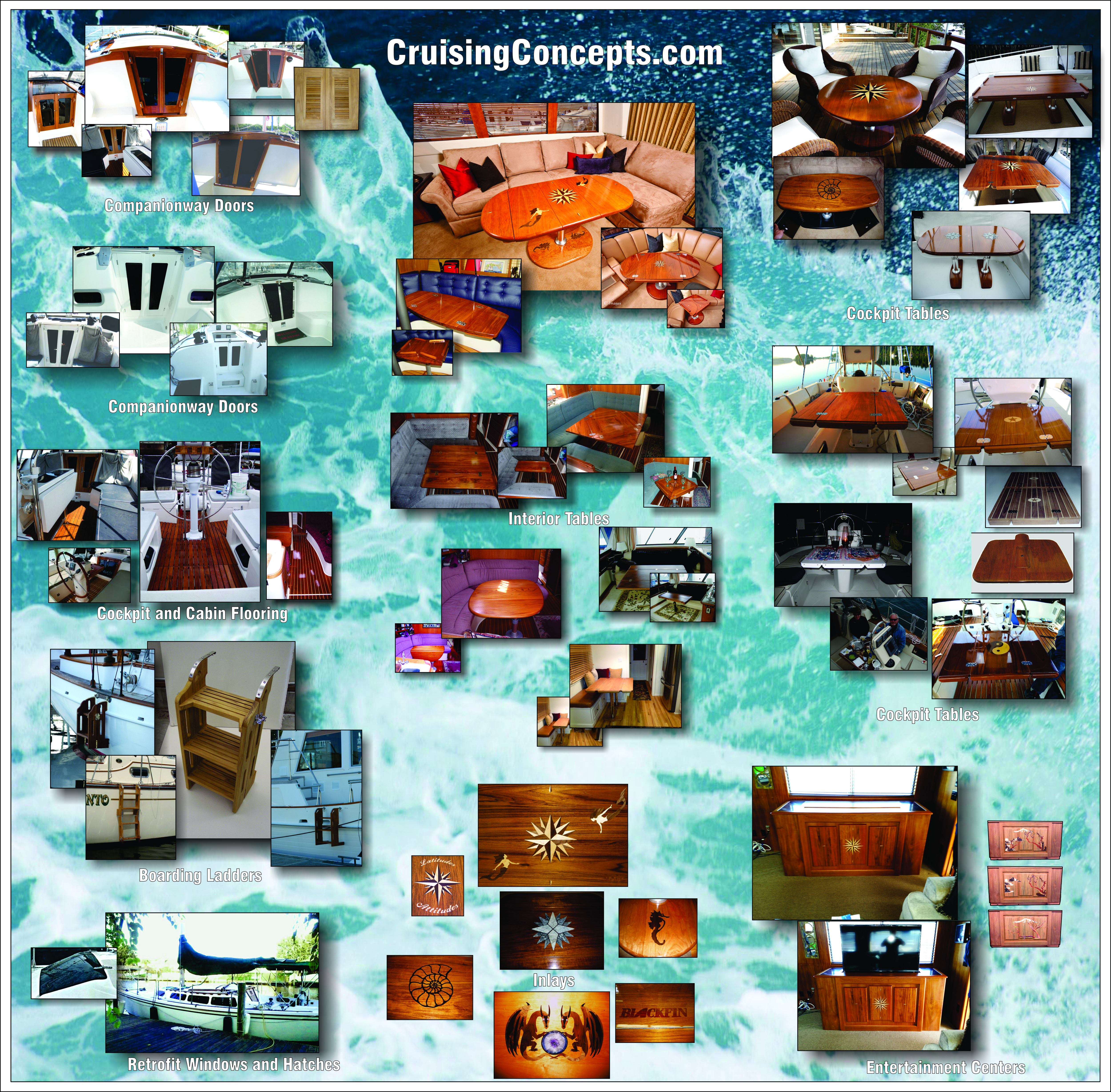 Just got back from the Annapolis Boat Show. I would say it was a good boat show with more booths than ever and the boats shown seem to have markedly increased compared to the last few years, a nice up trend in the industry. In case you missed the show I will attach the booth back drop. Rather than bringing in more pieces to show I decided that a magnitude more pictures would show off our capabilities better. It definitely was an eye catcher to see this 8 foot by 8 foot hanging canvas as a complete wall of pictures. The best selling items remain with Companionway Doors and Interior Tables.