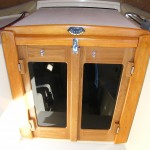 I opted to apply small felt pads (like those used for drawer and cupboard doors) to the edges of the Lexan panels to make them snug in the door. Also, I added a barrel bolt at the bottom of the starboard door for greater security and a tighter fit when the doors are closed. This probably wasn’t necessary, but I had the same arrangement on my previous boat doors and liked the option.
