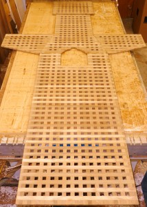 My just-finished set of cockpit floor grates for Paul Brother’s Catalina 320. If you have never had floor boards or grates for the cockpit, they are a joy to have. Not only do they look elegant but they are very functional. First the dirt from your shoes or feet fall below the boards or grates. You will notice the companionway threshold, steps inside the cabin, and inside cabin floor stays clean. For those of us who have a swim step you can dip or hose off all that sand and dirt from your shoes before entering into the cockpit area. Showering on the aft swim step or in the cockpit is pleasing not having to stand in the water and soap. Washing down the decks is a breeze as you lift each segment up starting forward. Lastly it feels wonderful to the bare feet and you are not walking on wet decks.
