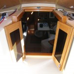 I opted to apply small felt pads (like those used for drawer and cupboard doors) to the edges of the Lexan panels to make them snug in the door. Also, I added a barrel bolt at the bottom of the starboard door for greater security and a tighter fit when the doors are closed. This probably wasn’t necessary, but I had the same arrangement on my previous boat doors and liked the option.
